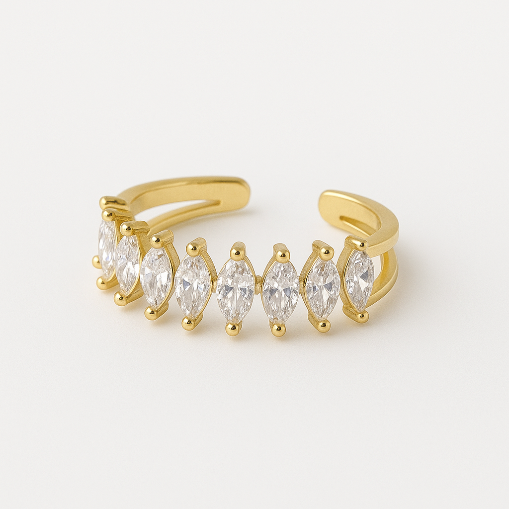 Design: An open ring adorned with a row of marquise-cut stones, radiating brilliance from every angle.