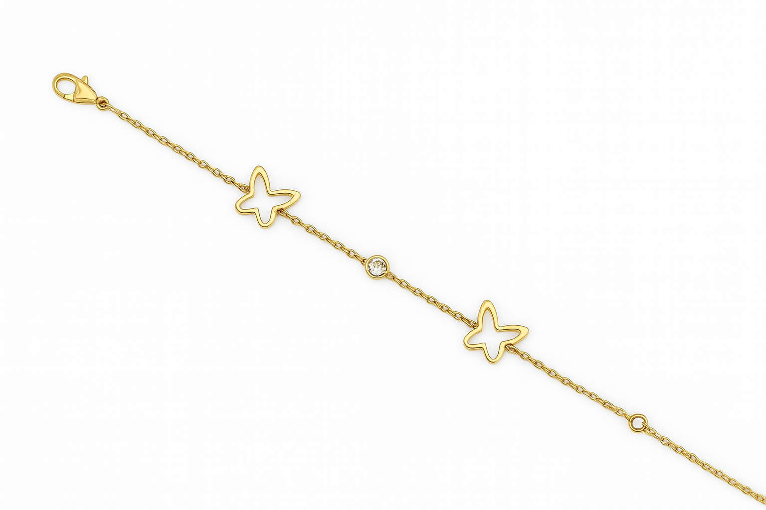 Design: A fine chain adorned with airy butterflies and sparkling details, capturing lightness and elegance.