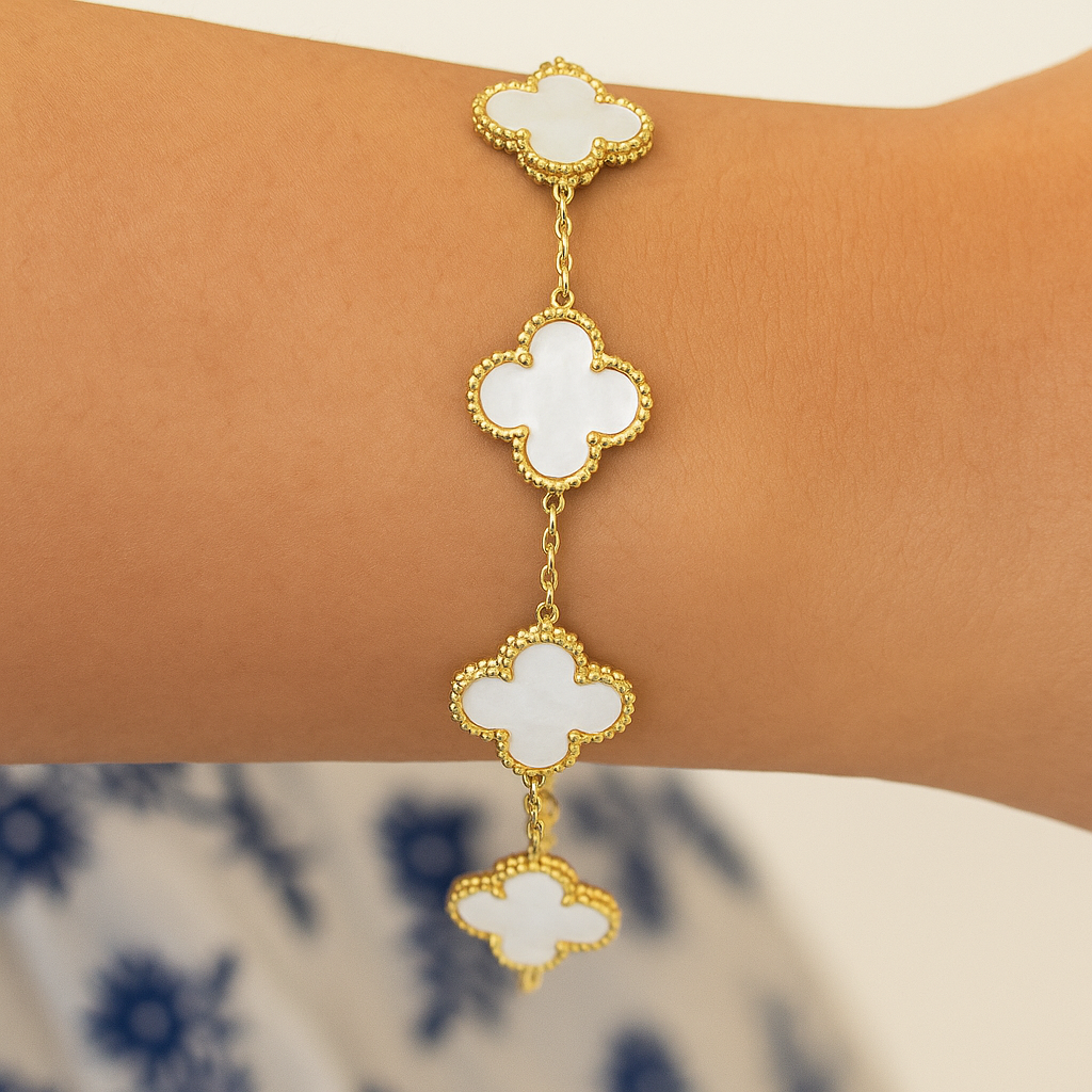Material: Premium stainless steel with luminous mother-of-pearl clovers.