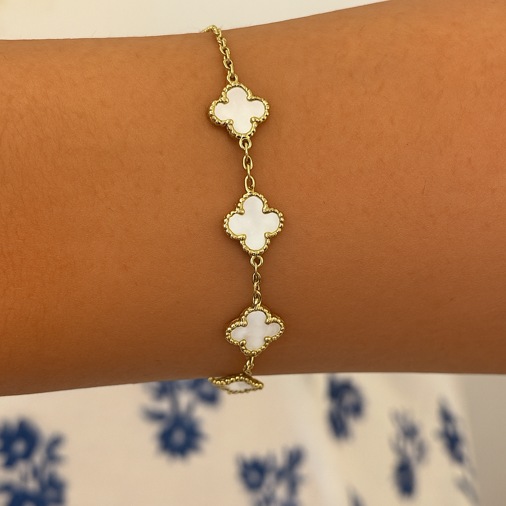 Material: Premium stainless steel with luminous mini mother-of-pearl clovers.