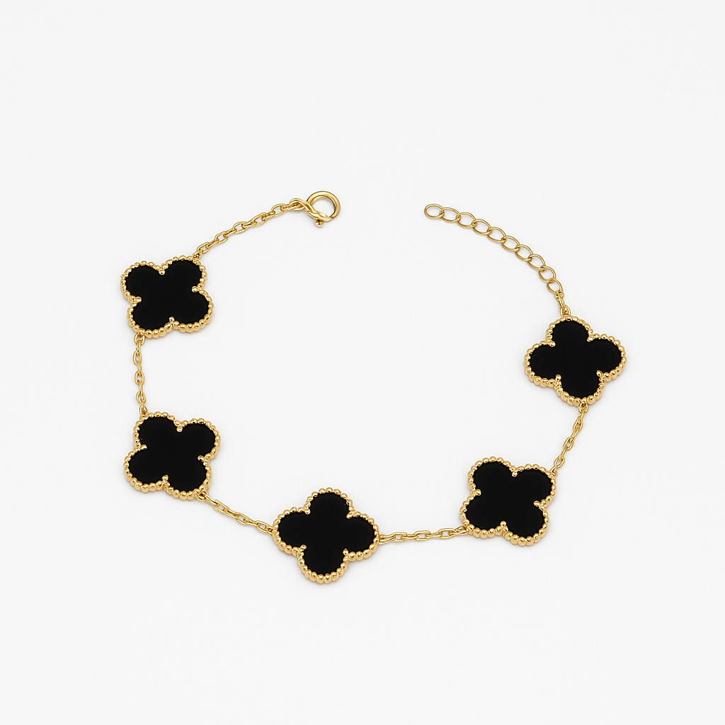 Design: A series of sleek black clovers set in golden outlines, exuding refined minimalism.